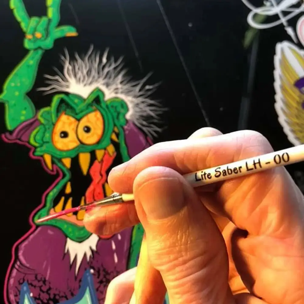 The Lite Saber #00 was designed by Von Dago—a 50+ year veteran of custom painting and multiple Hall of Fame–inducted pinstriper—for artists who need ultra-fine line precision with the stability of a long handle. This brush delivers a smooth, controlled feel that makes it ideal for delicate scrolls, tight curves, and detailed linework where accuracy and flow matter most.