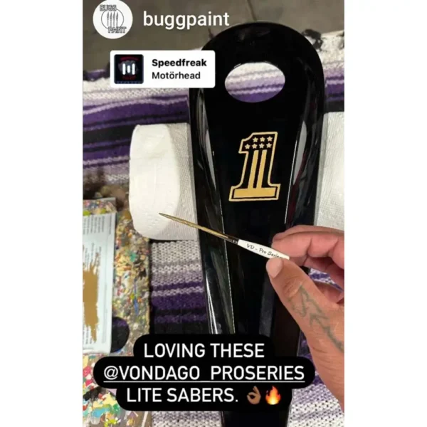 Created by Von Dago—a 50+ year veteran of custom painting and multiple Hall of Fame–inducted pinstriper—the Pro-Series Lite Saber 5 Brush Set is a professional collection built for smooth scrolling, clean pinstriping, and controlled detailing. Each brush is handmade in the USA and crafted to deliver exceptional flow, balance, and responsiveness for artists of all skill levels.