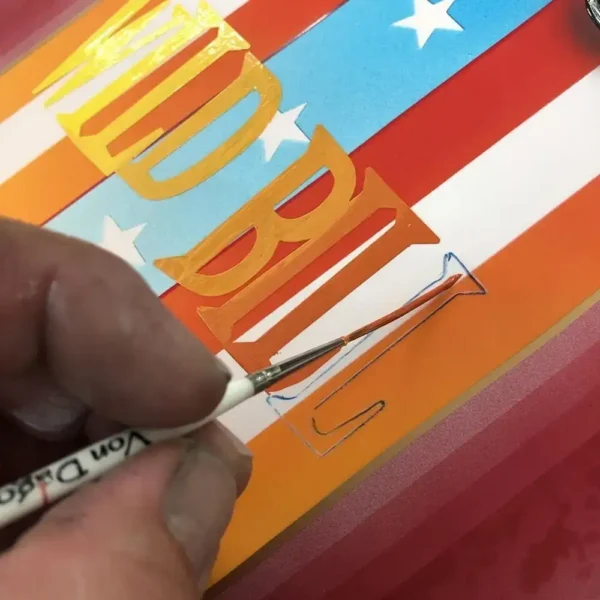 Originally designed by Von Dago for his own daily striping and scroll work, the Lite Saber brushes are known for their fluid paint delivery and natural feel. The hand-selected blue squirrel hair imported from Europe provides an incredibly soft, responsive tip that creates clean, graceful strokes with minimal effort. The short handles give artists extra control when working close to the panel, making these brushes equally effective for lettering, borders, decorative accents, and fine graphic detail.